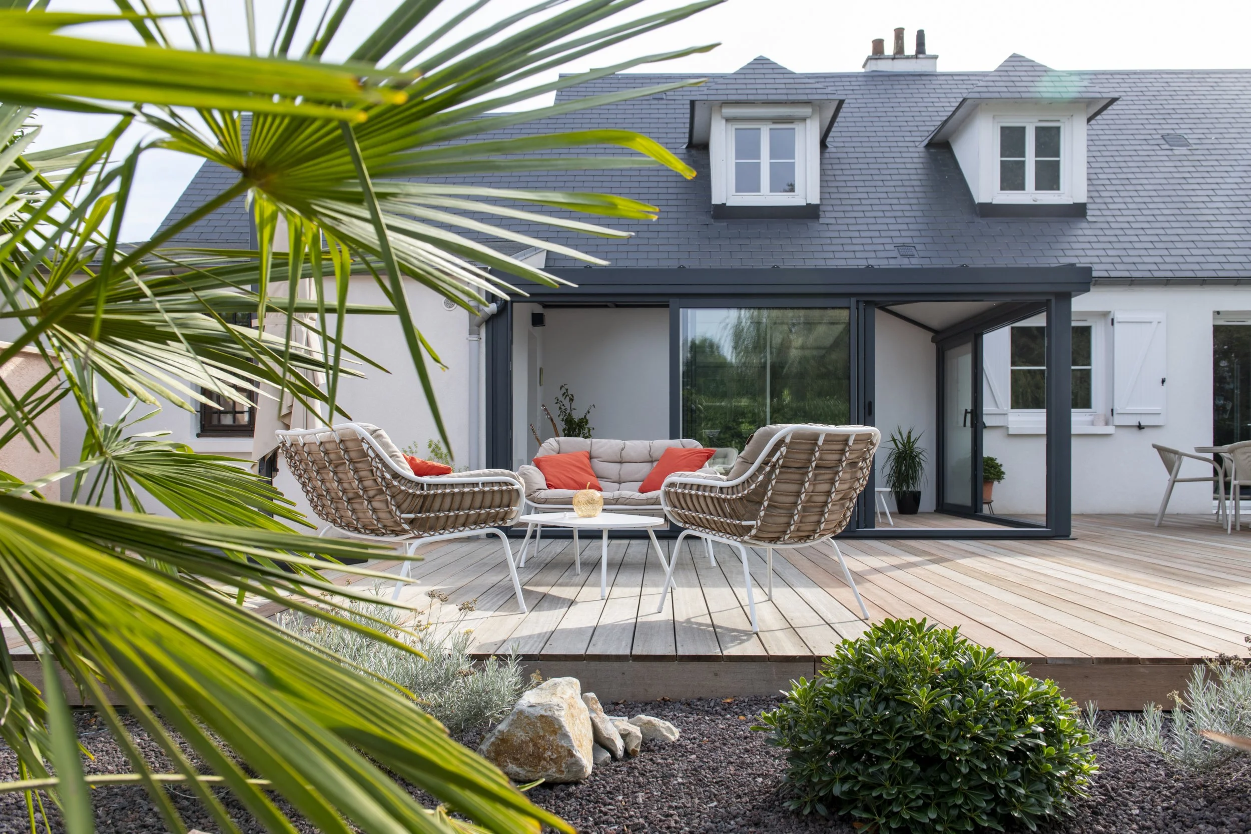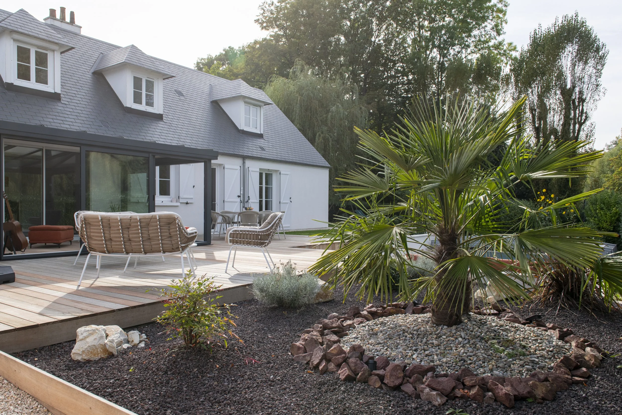 Retours clients “Noémie nous a accompagné dans le projet de rénovation totale de nos extérieurs . Elle a su parfaitement prendre en compte notre mode de vie et l'intégrer dans la proposition de refonte tant au niveau des espaces , des matières et des aménagements / mobiliers extérieurs . Nous lui avons délégué le suivi de chantier pour éviter d'éventuelles distorsions avec les entrepreneurs . A chacune des étapes et imprévus Noemie a su rebondir et trouver des solutions adaptées. Merci pour tout.”